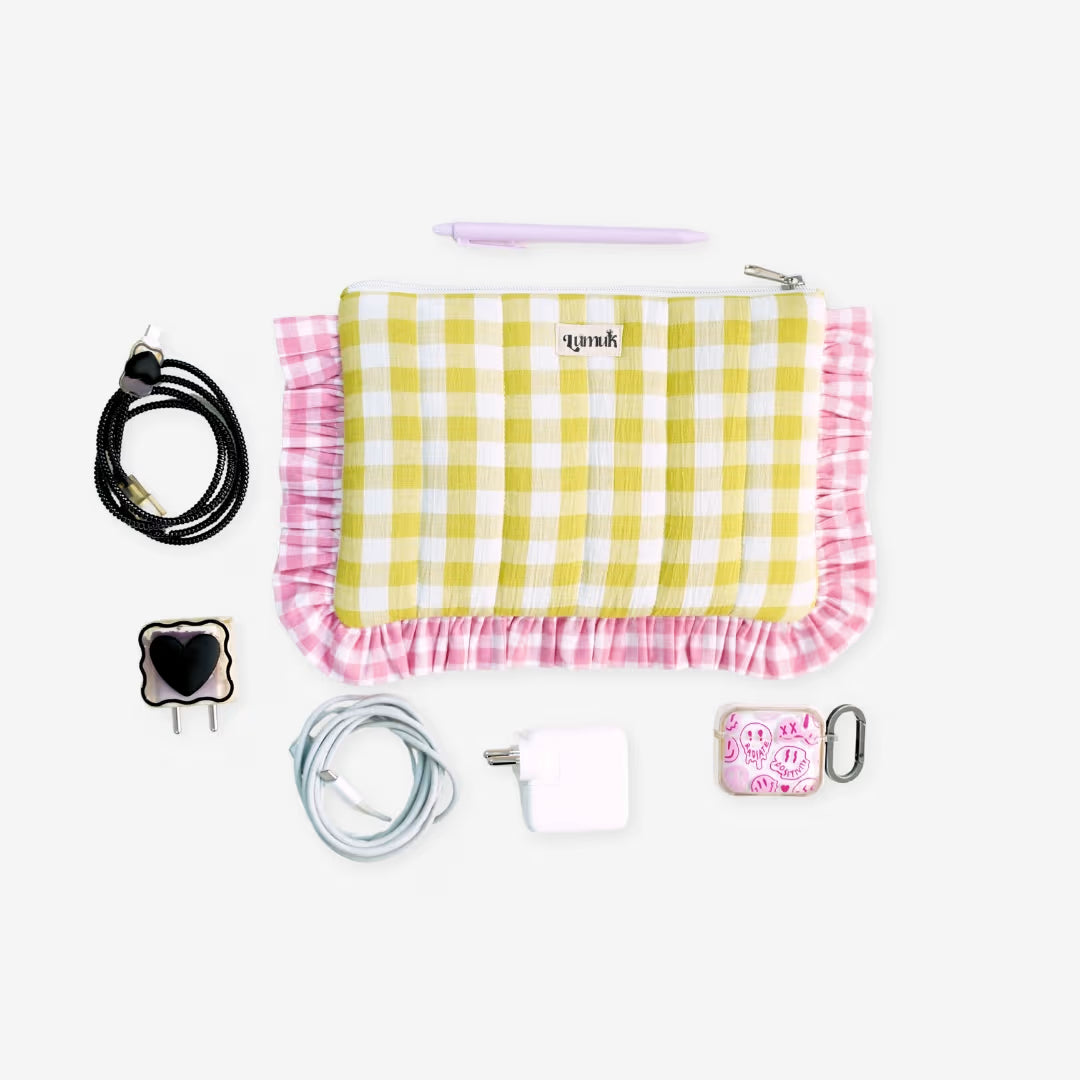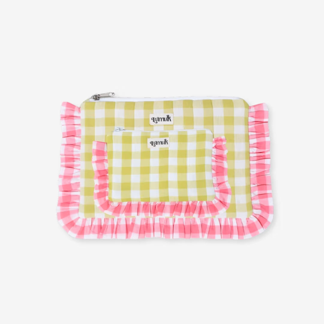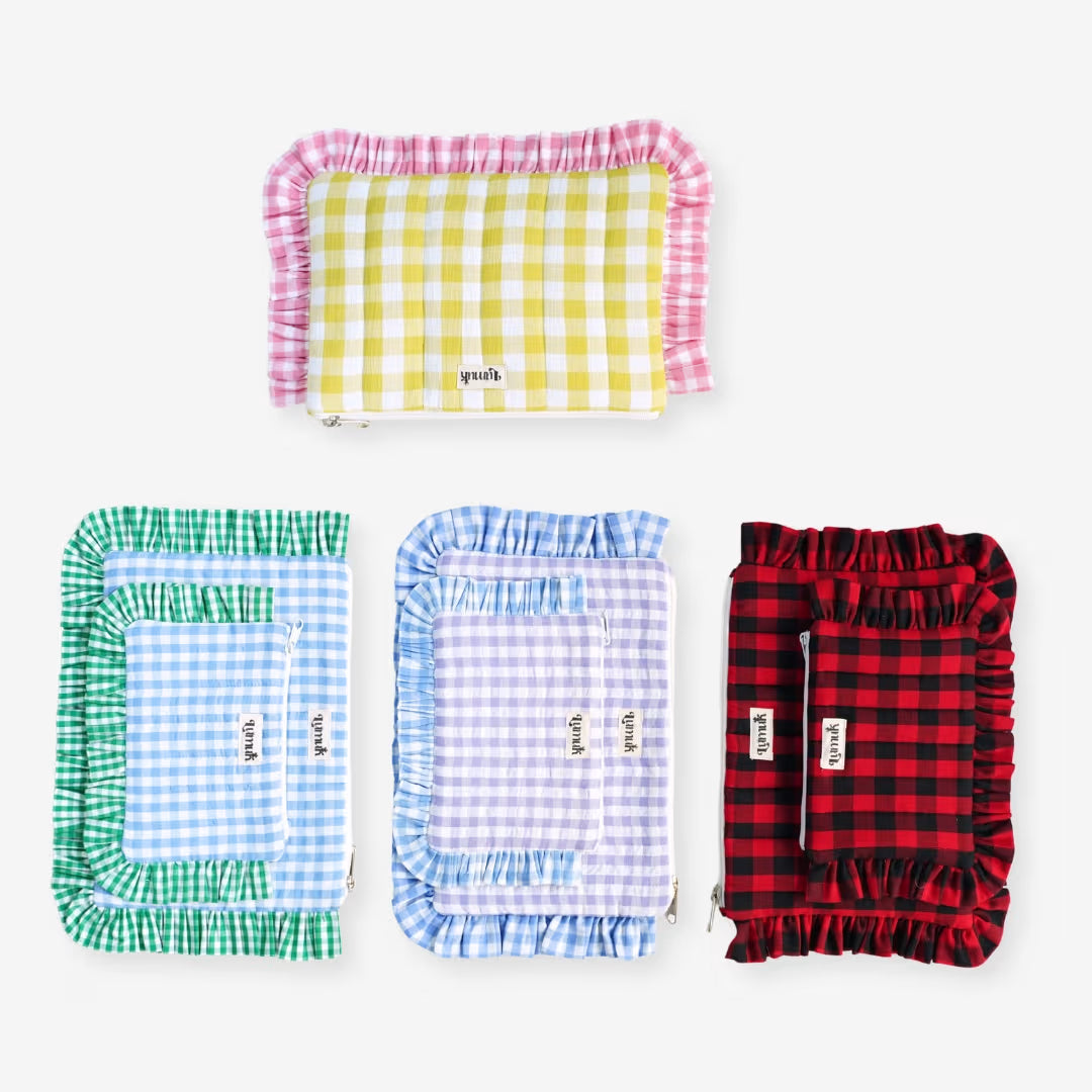 Flamingo Flirt Pouches | Quilted Ruffle Pouch Set