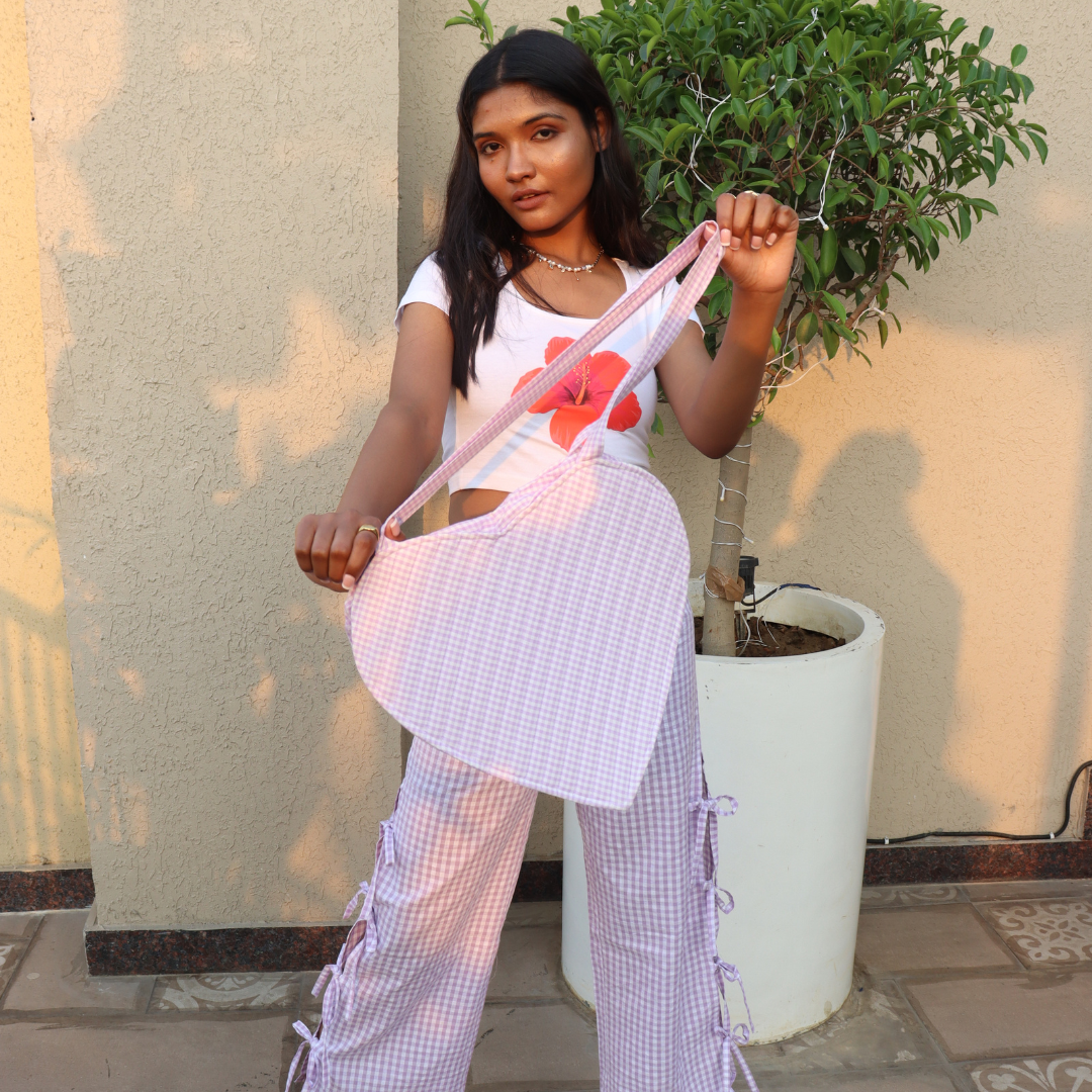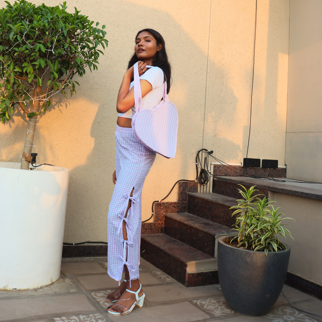 Gingham Grove | A small heart bag | Purple