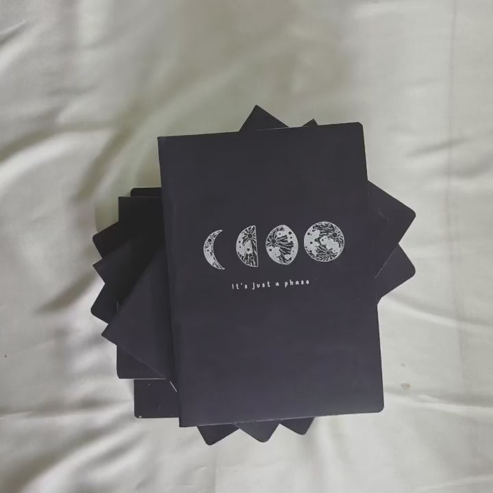 Unleash your dreams and capture life’s magical moments with the "It’s a Phase" diary. Designed with a stunning black and silver theme, this journal blends sophistication, creativity, and motivation.