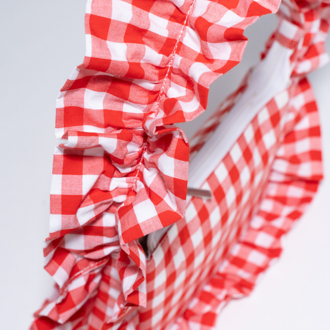 - Classic red & white gingham print – bold, cute, and eye-catching
