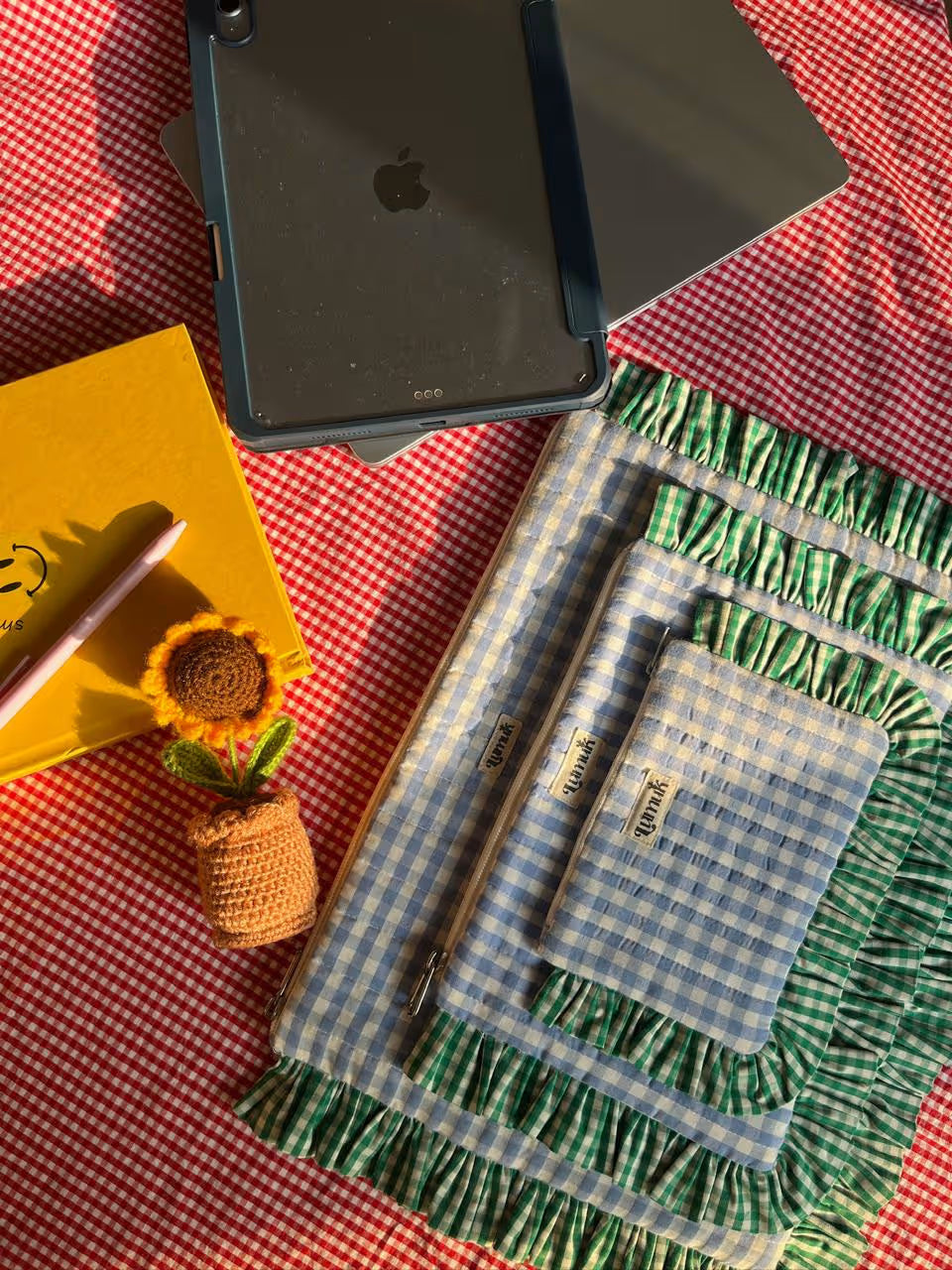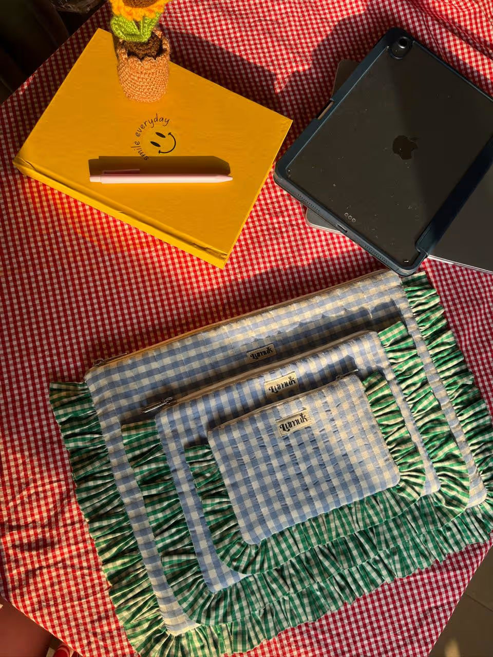 Ocean Eyes Pouches | Quilted Ruffle Pouch Set