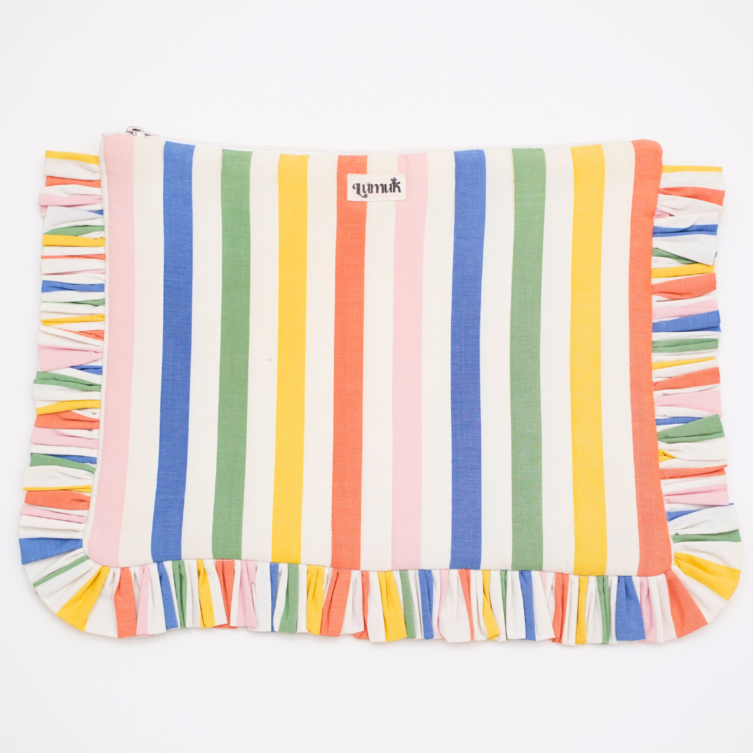 - Quilted cotton laptop sleeve in playful rainbow stripes with a statement ruffle border—cute, protective, Pinterest-worthy.