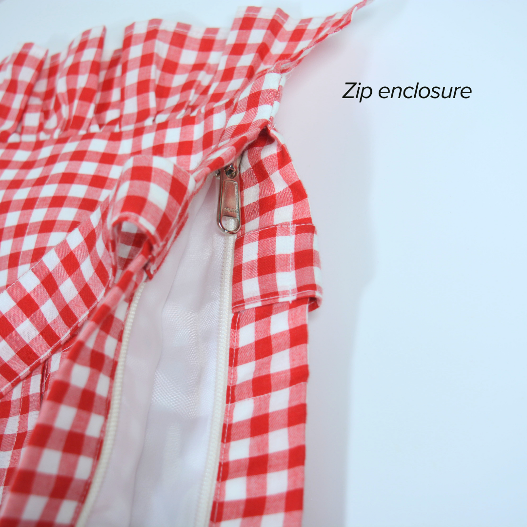 - Classic Gingham Print – Eye-catching red checks that never go out of style.