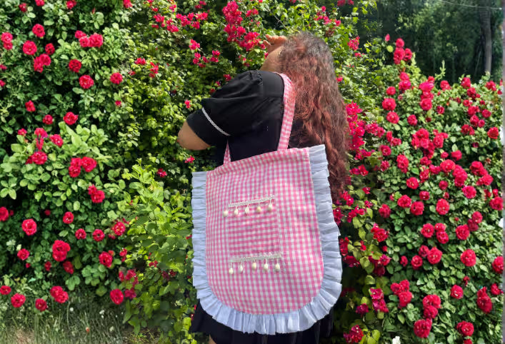 - Soft Pink Gingham Fabric – Made from lightweight yet sturdy cotton for everyday glam.