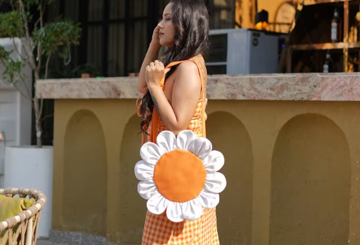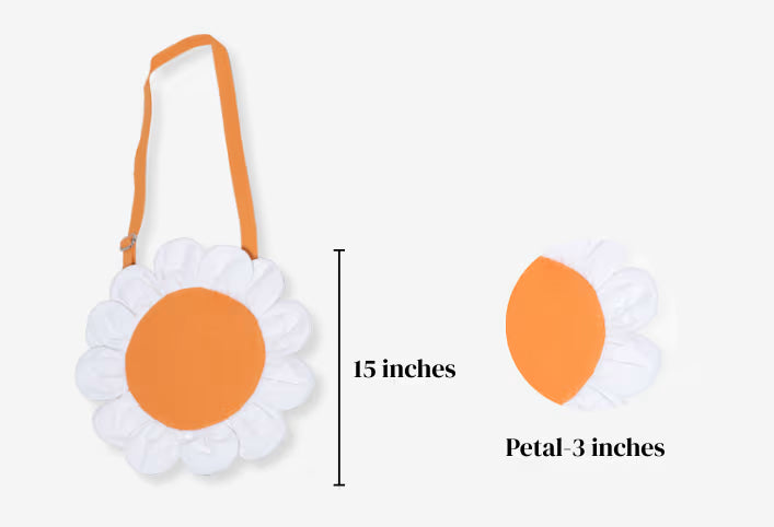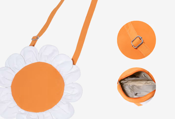 A cheerful sunflower-shaped bag in white and orange — playful, bold, and impossible to miss